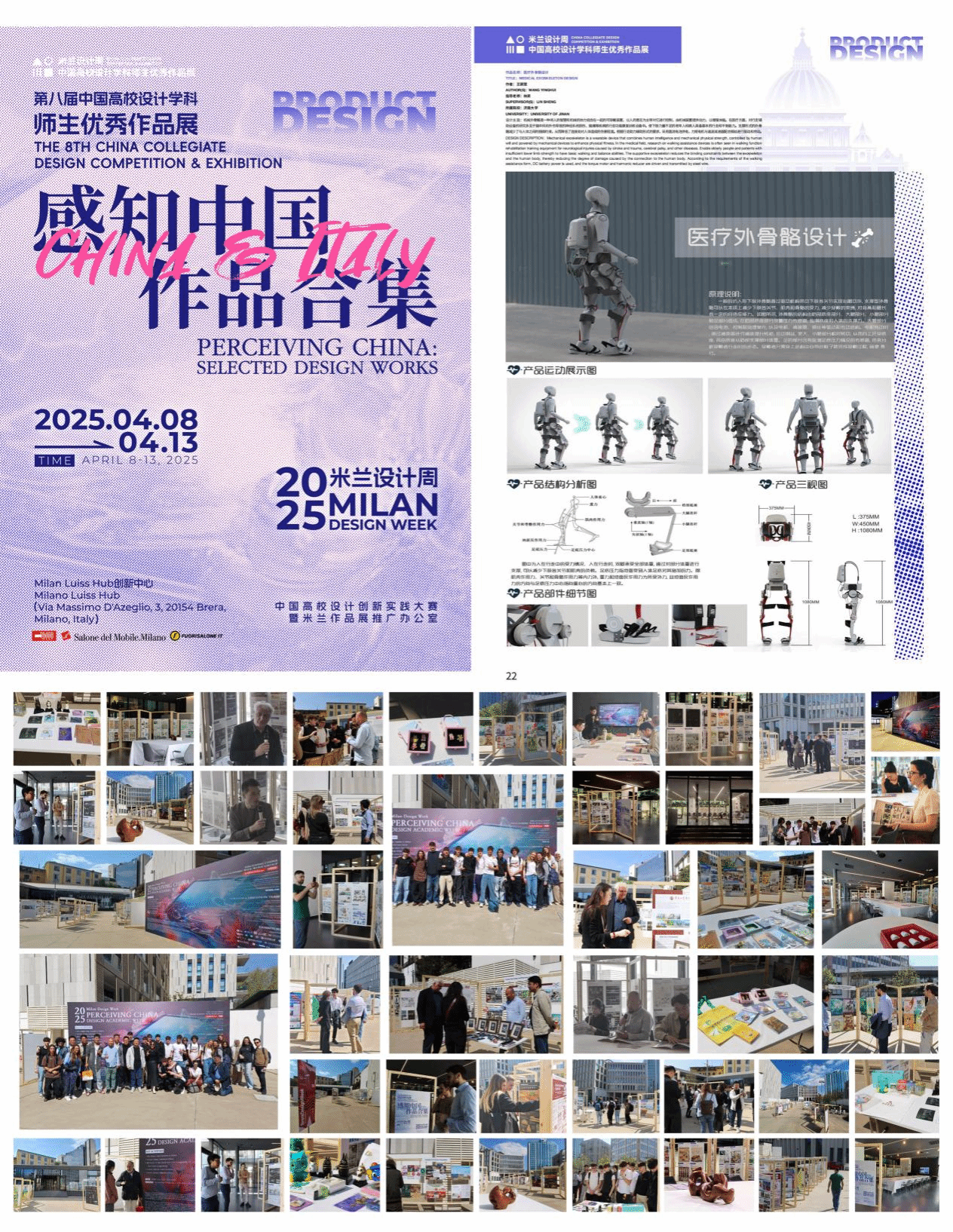 由beat365亚洲体育官方网站beat365亚洲体育官方网站工业设计专业王颖慧同学设计、工业设计系主任林昇老师指导的《医疗外骨骼设计》作品,成功入选本次展览。该作品以人机协同技术助力行走康复为核心理念,通过创新结构设计优化穿戴舒适性与安全性。