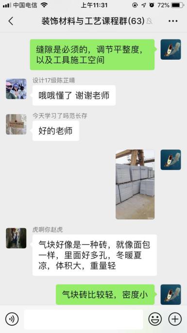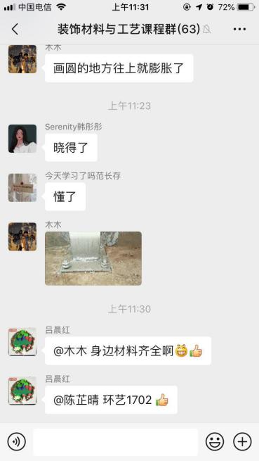 杨周吕晨红老师的装饰材料与工艺课程,在线上教学也起到了不错的效果,员工反馈热烈,以下是现场图片反馈。