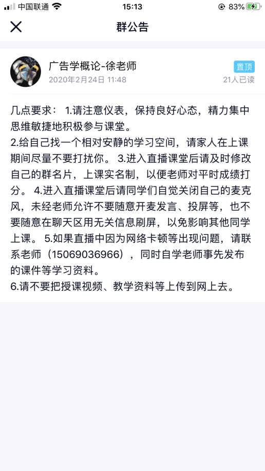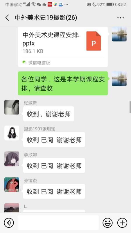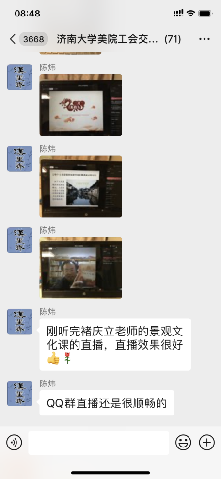 美术系褚庆立老师,承担纯理论课程,为了应对停课不停学的特殊时期的授课策略,在开学前就参加了公司教务系统组织的线上授课技能培训,试探了各种平台,最终的策略是学习通平台做文本资料储备,微信群交流作备份,QQ直播为首选。24日开学第一天,一切正常,直播讲解,ppt播放,视频插入如在教室中传统授课方式一样,顺畅而自然,三个小时一气呵成,研究生与系主任同时参与整个授课过程。课间还和员工逐个视频,反馈意见良好。员工普遍反映整堂课感觉收获很大,不仅吸引了员工,还吸引了员工家长一起听课。