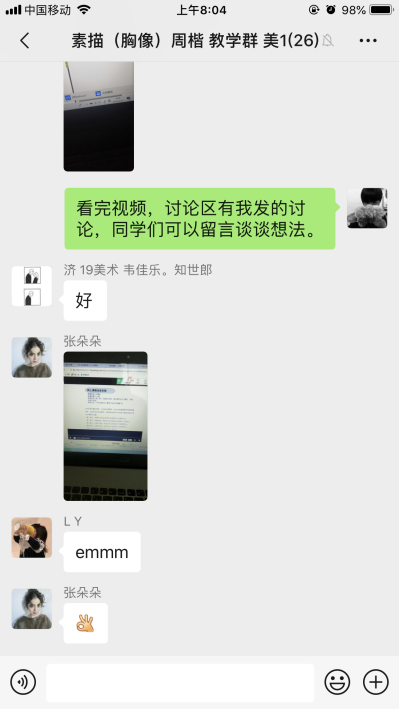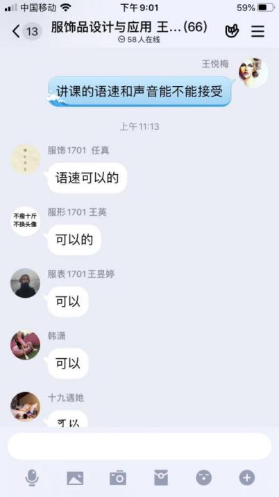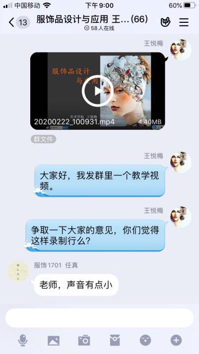 图为环境艺术设计专业杨周与吕晨红老师与17级员工进行课堂“云”交流