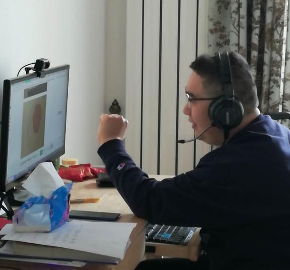 陈健老师,作为老教师,根据技法课程示范性要求高的特点,为保证教学,提前录制了大量短视频,这些视频对于技法课教学非常有利。在上课过程中网络出现卡顿的情况下,提前录制好的视频发挥了极大作用。