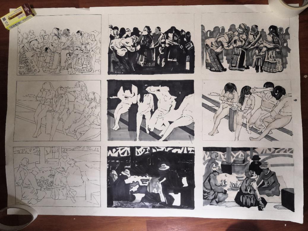 第一周教学:大群授课,三个小群分组讨论互动。让员工尝试分三个组,分别针对员工的大二以后选择的三个方向,国画、油画、综绘,分三组进行教学环节开展,目前是分组讨论学习环节,准备在本课程结束前一周尝试各专业的教学的办法引导方式进行,做好专业方向的适度衔接(课前与员工交流,大部分同学对下学期大二选专业方向迷茫,尝试分组员工自由,分组分类讨论分类学习,有侧重点引导)。