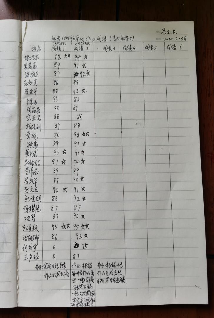 三、马立洪老师的课程是技法课,由于不能现场督促指导员工完成作业练习,马老师用点名互动、每天打分等方式激发员工的参与积极性,全方位了解每个员工的学习状况。