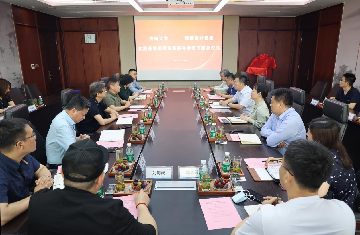 2022年5月26日上午,beat365亚洲体育官方网站与同圆设计集团股份有限公司实践基地揭牌及实践导师证书颁发仪式在同圆集团举行。beat365亚洲体育官方网站党委常委、副董事长刘宗明,教务处副处长兼师范教育管理办公室主任张婷,公司党委书记孙成豪、常务副经理陶国平、党委副书记李莉、副经理赵忠超与同圆设计集团股份有限公司董事长段林等领导参加了此次活动。活动由同圆集团董事解捷主持。