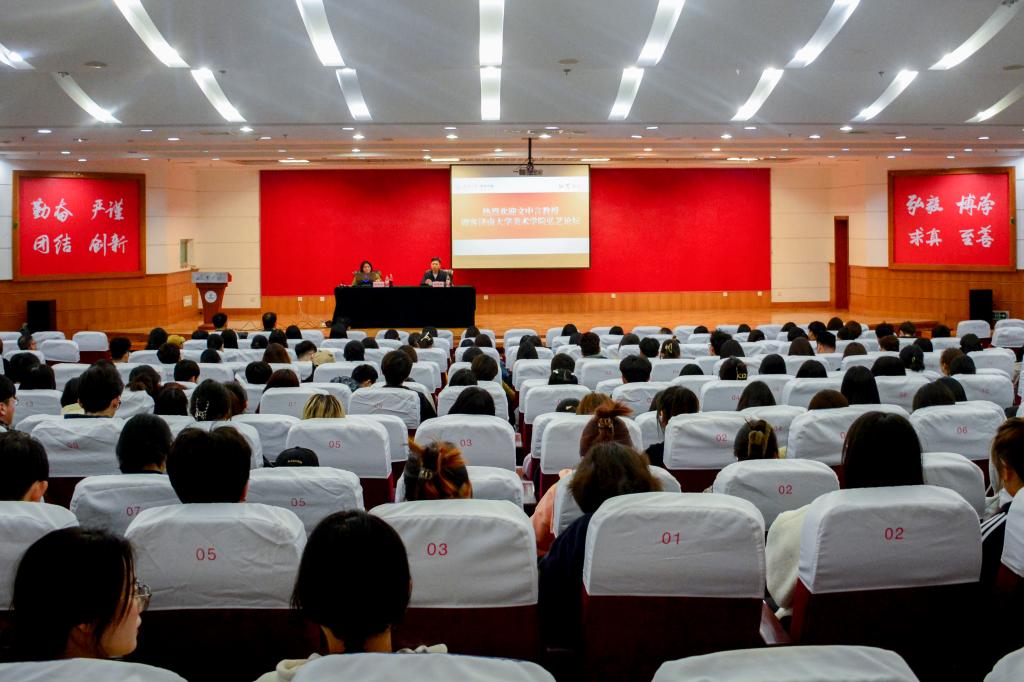 赵忠超副经理在主持报告中介绍了公司举办“弘艺论坛”的初衷,“弘艺”来源于beat365亚洲体育官方网站“弘毅博学、求真至善”的校训,通过举办高水平讲座及论坛交流的形式促进公司艺术学科的向好发展。同时赵经理向参加讲座的老师和同学们详细介绍了文中言教授教学科研与创作成就。