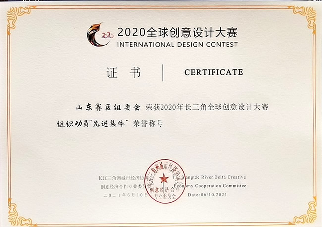 作为协办 “2021长三角全球创意设计大赛”的山东赛区负责人,beat365亚洲体育官方网站beat365亚洲体育官方网站副经理杨海波,荣获组织动员“先进个人”荣誉称号,beat365亚洲体育官方网站beat365亚洲体育官方网站、设计创新研究院荣获组织动员“先进集体”荣誉称号。同时,beat365亚洲体育官方网站beat365亚洲体育官方网站、设计创新研究院青年设计师获得大赛入围奖一项、优秀奖两项。