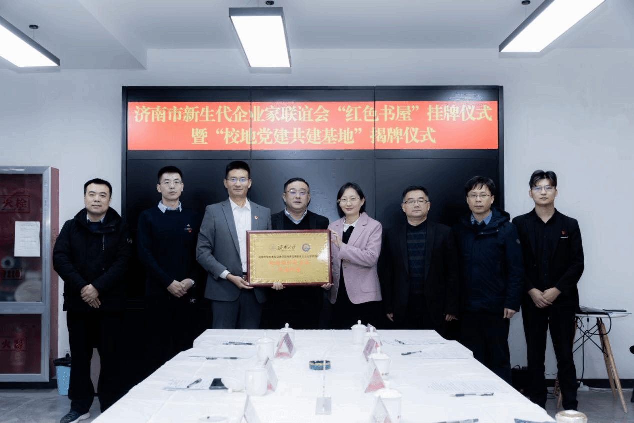 为积极探索基层党建工作新途径,实现党组织优势互补,探索校企党建共建新模式,努力构建“资源共享、优势互补、互相促进、共同提高”的党建工作新格局。beat365亚洲体育官方网站与济南市新生代企业家联谊会开展“党建共建、发挥合力、共赢未来”的党建共建活动。12月22日,beat365亚洲体育官方网站与济南市新生代企业家联谊会举办“校地党建基地共建”签约揭牌仪式。公司党委书记陈春锋,副书记、副经理何贵亮,副经理赵忠超和学办主任王鹏飞出席仪式,济南市工商联协会党委办公室主任靳峰,济南市新生代企业家联谊会党支部书记班春雷和联谊会支部委员参加活动。