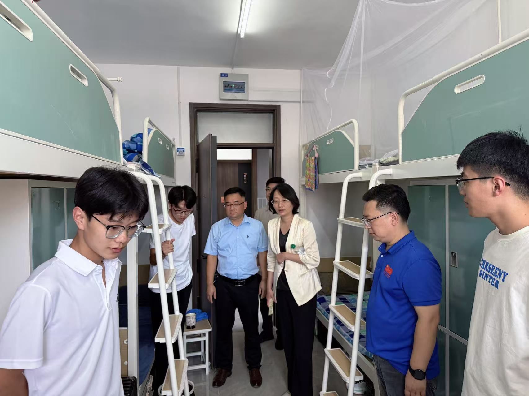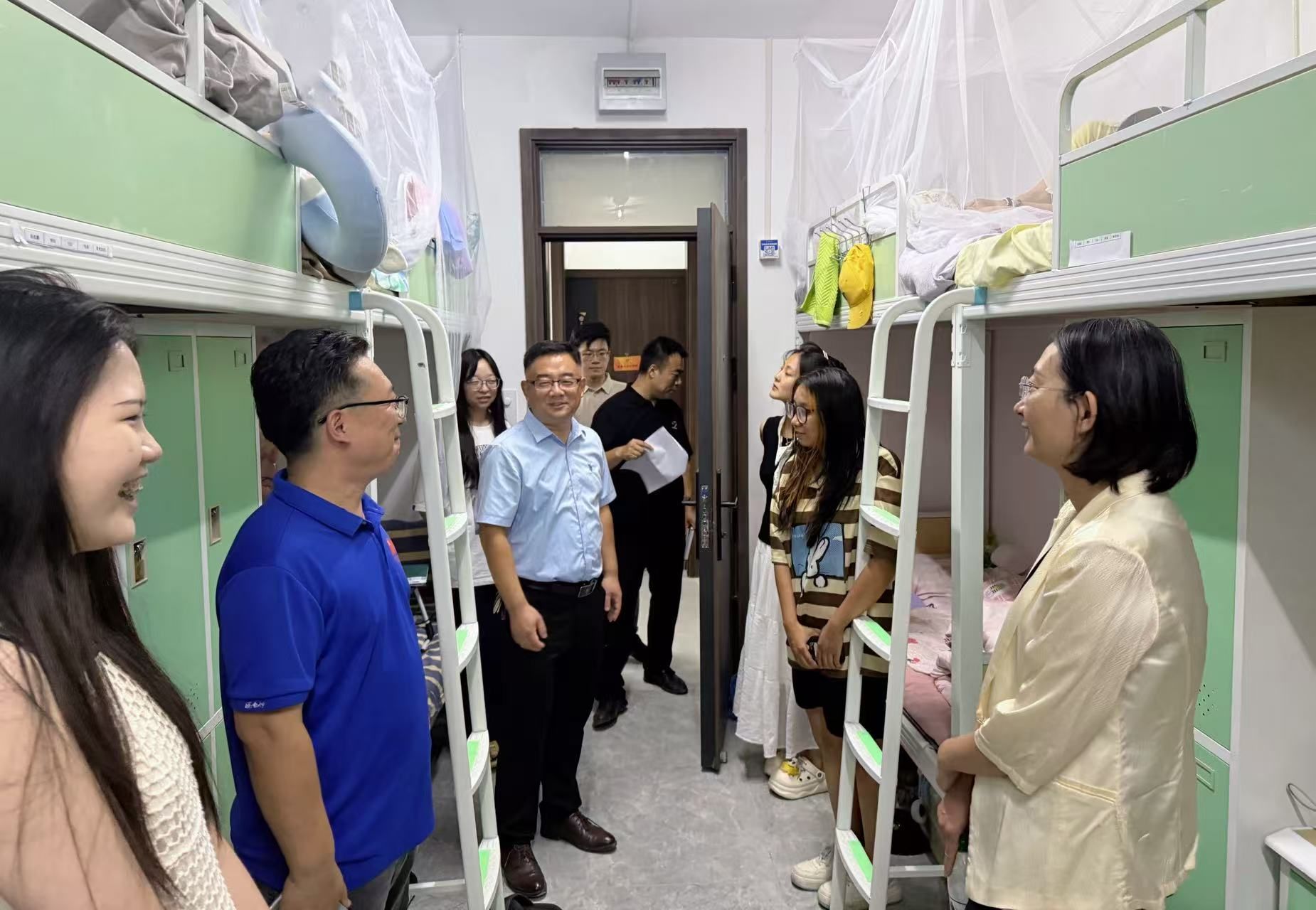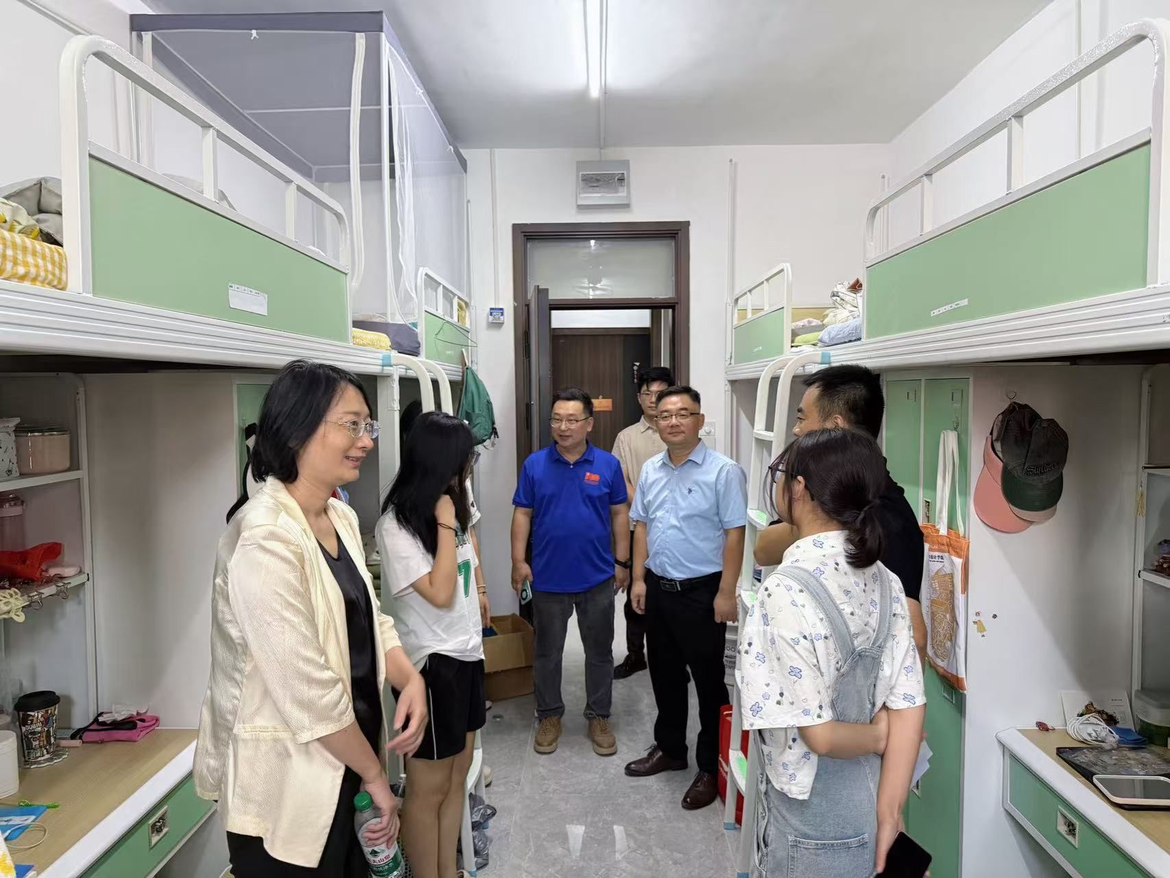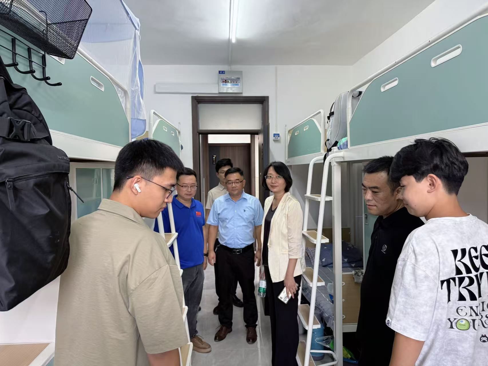 为全面掌握2025级新生的入学适应状态和思想动态,帮助同学们尽快适应新环境、融入新集体、开启新生活,9月10日下午,公司党委书记陈春锋,副经理杨海波,党委副书记、副经理何贵亮带队走访学4、学5宿舍楼,看望并慰问新入学的同学们。