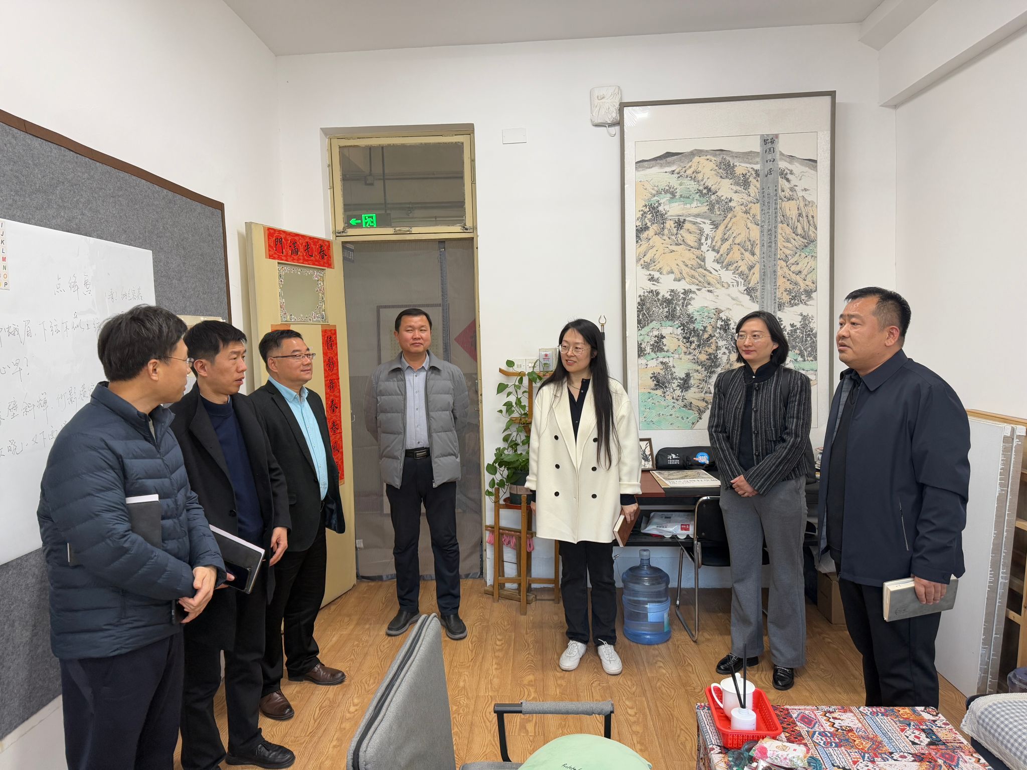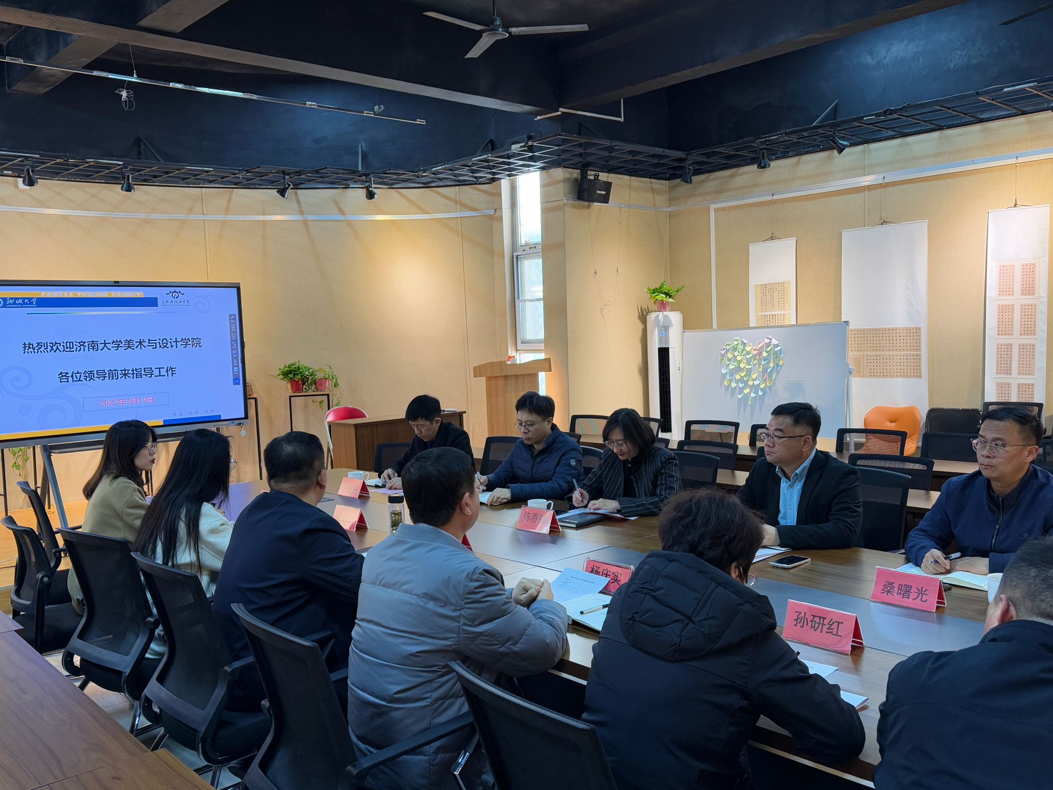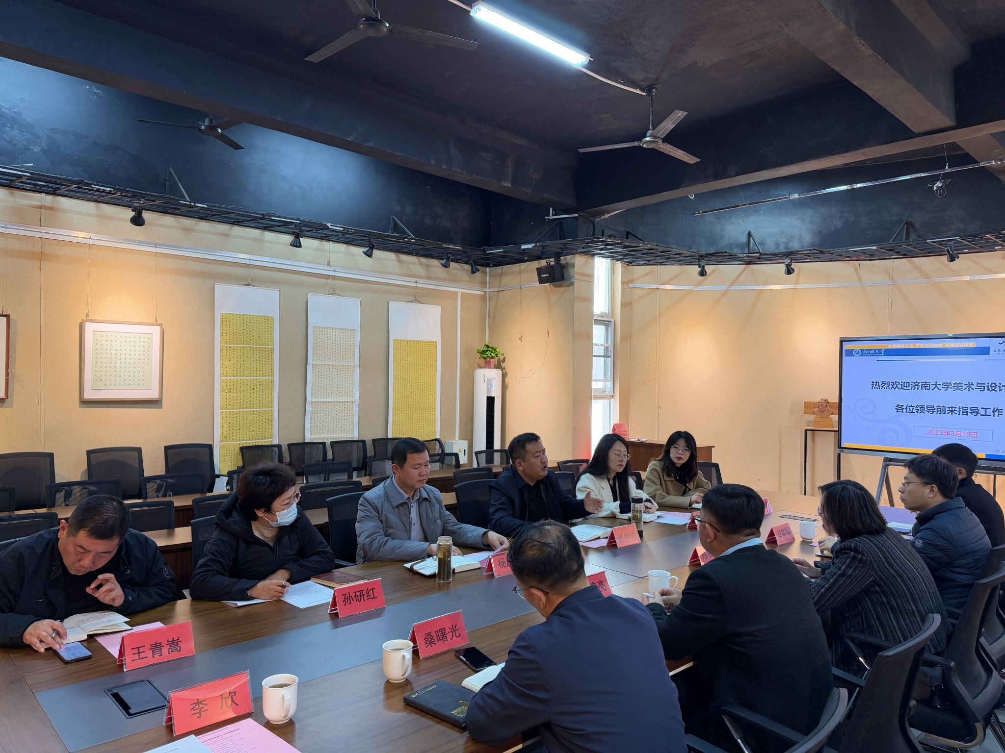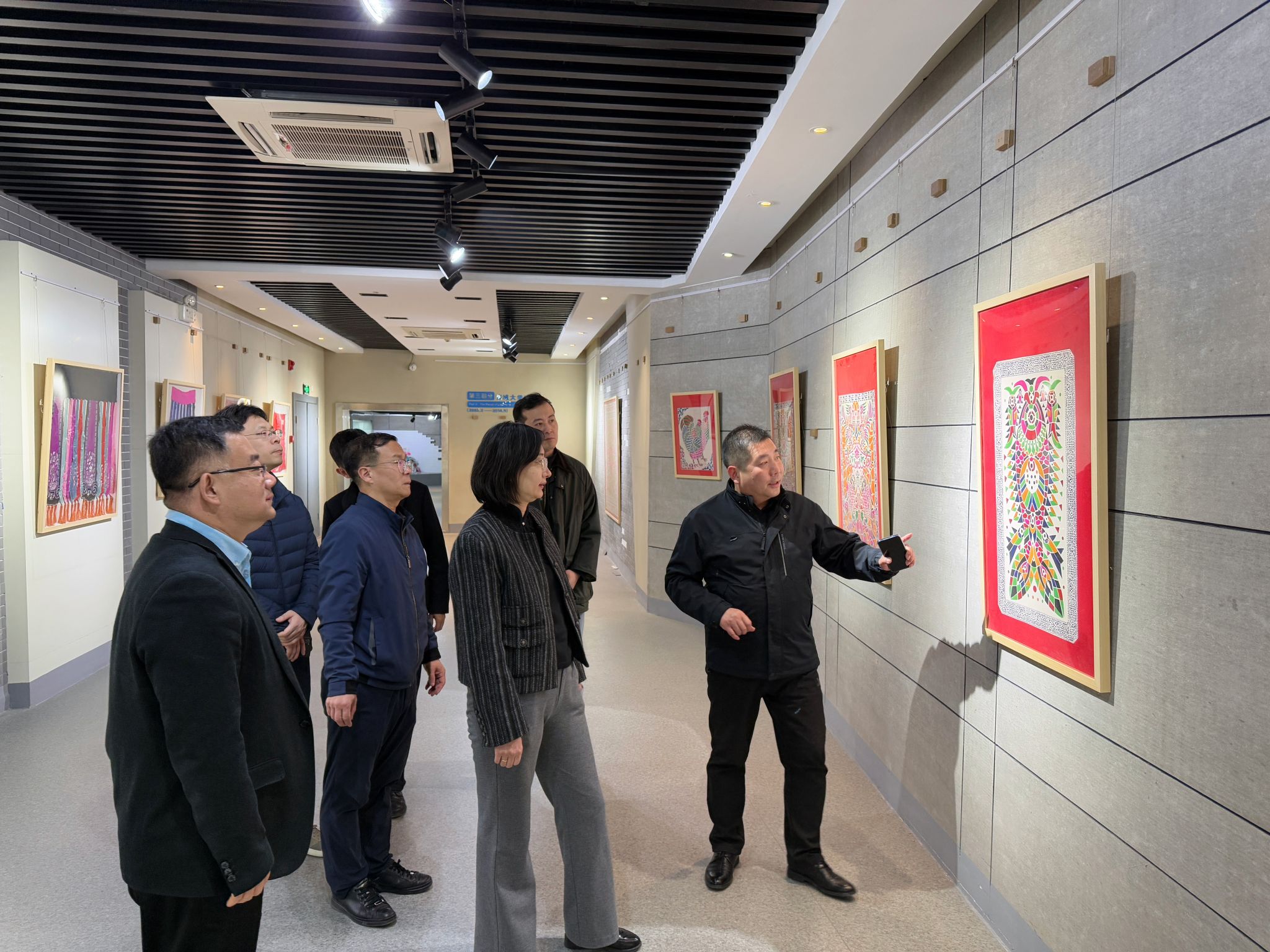 会后,调研组一行参观了聊城大学beat365亚洲体育官方网站的展览室、工作室以及正在举办的黄河下游民众服饰展,实地观摩公司的办学实力和文化底蕴。