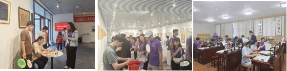 活动现场,美术系王小飞老师现场展示了中国传统水墨画团扇的绘制技艺,丁奕翔老师则带来了精心设计的漆面扇体验项目,书法系成海明博士指导台湾青年员工体验中国传统书法艺术,两岸师生在书写“两岸一家、与你同行”的主题作品中,深刻感受到了两岸同根同源的历史文化内涵。