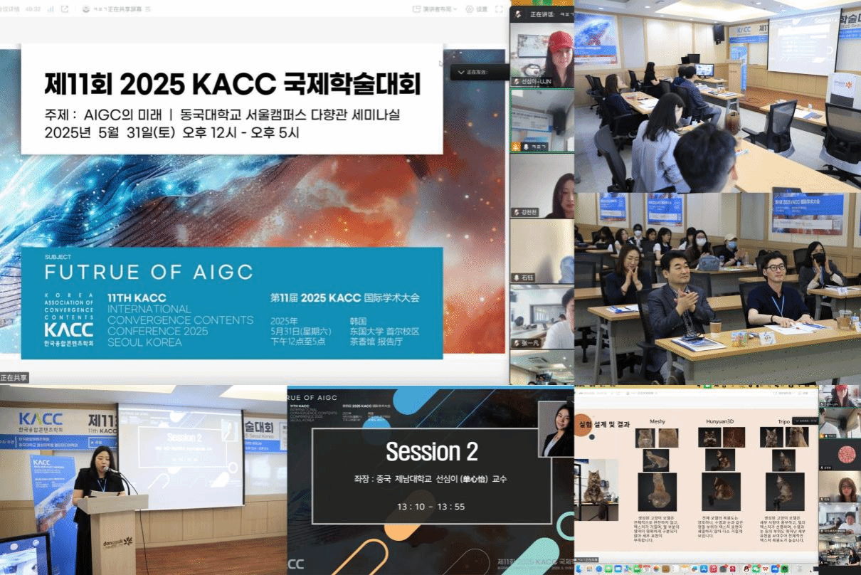 2025年5月31日,第11届KACC国际学术大会在韩国首尔召开。本届大会以“AIGC的未来”(Future of AIGC)为主题,聚焦全球人工智能生成内容的技术演进与跨学科应用,围绕AIGC技术现状、伦理挑战及设计应用场景展开深度研讨。​beat365亚洲体育官方网站青年教师单心怡参加并主持专题研讨会议。