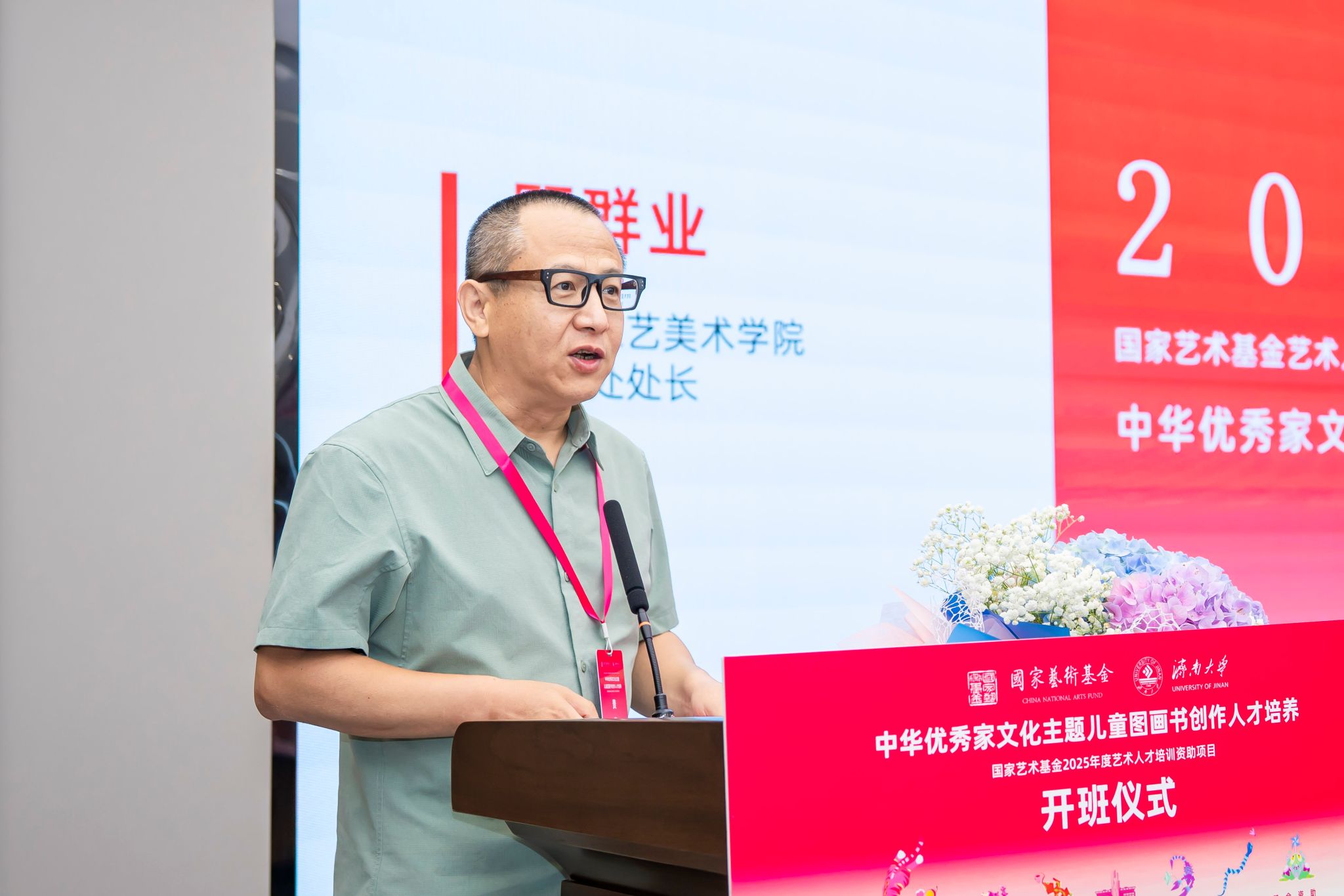 项目负责人刘东涛在发言中系统介绍了项目实施规划:本次培训通过全国范围内的专业筛选,最终吸纳30位来自插画创作、儿童文学、出版传媒等领域的学员。课程体系包括家文化专题讲座、图画书出版实践、图画书主题创作理论、图画书主题创作实践、调研考察五个模块,助力创作者实现家文化与图画书表达的深度融合。