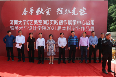 张硕秋副书记、王志副董事长共同为《艺美空间》实践创作展示中心揭幕。王志副董事长对《艺美空间》实践创作展示中心启用表示祝贺。张硕秋副书记宣布毕业生作品展开幕。仪式上,公司党委书记郝军致辞,陈健作为教师代表发言。本科生李建磊作为2021届毕业生代表发言。