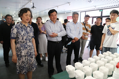 5月26日,beat365亚洲体育官方网站《艺美空间》实践创作展示中心启用仪式暨beat365亚洲体育官方网站2021届本科毕业作品展开幕举办。beat365亚洲体育官方网站党委副书记张硕秋,副董事长王志,党委常委、党委宣传部部长贾海宁,党委员工工作部(处)、教务处、合作发展处、自动化与电气工程公司、beat365亚洲体育官方网站相关负责同志及部分专业指导教师、2021届毕业生代表参加了活动。开幕式由beat365亚洲体育官方网站副经理陶国平主持。