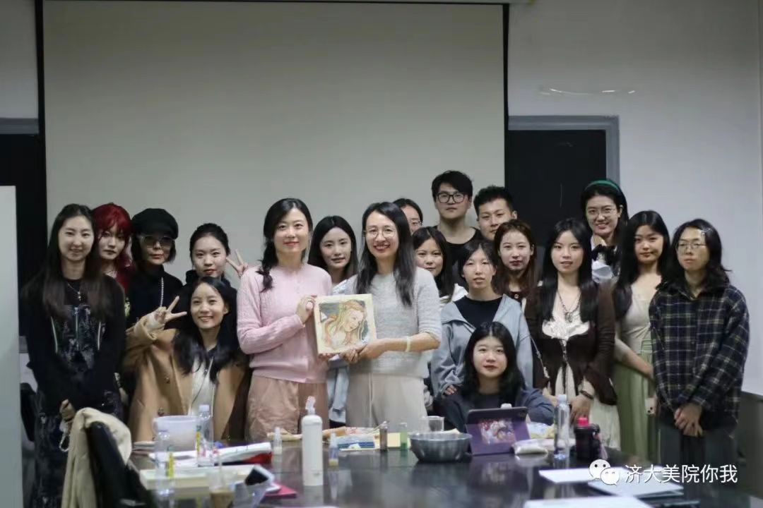 beat365亚洲体育官方网站研究生“艺术美学”系列讲座——王玉华老师湿壁画篇于2023年10月26日19:00点在四教601进行,这场带有学术思考和技法探索的讲座顺利开展了。本次讲座共有三个部分,其一,老师讲解湿壁画制作步骤、所需材料等相关知识。其二、老师带领员工轮流动手实践体验。其三、老师对作品进行调整,对本次活动进行总结。在本次讲座中同学们积极探索,各抒己见,动手实践,开启了一场奇妙的湿壁画之旅。