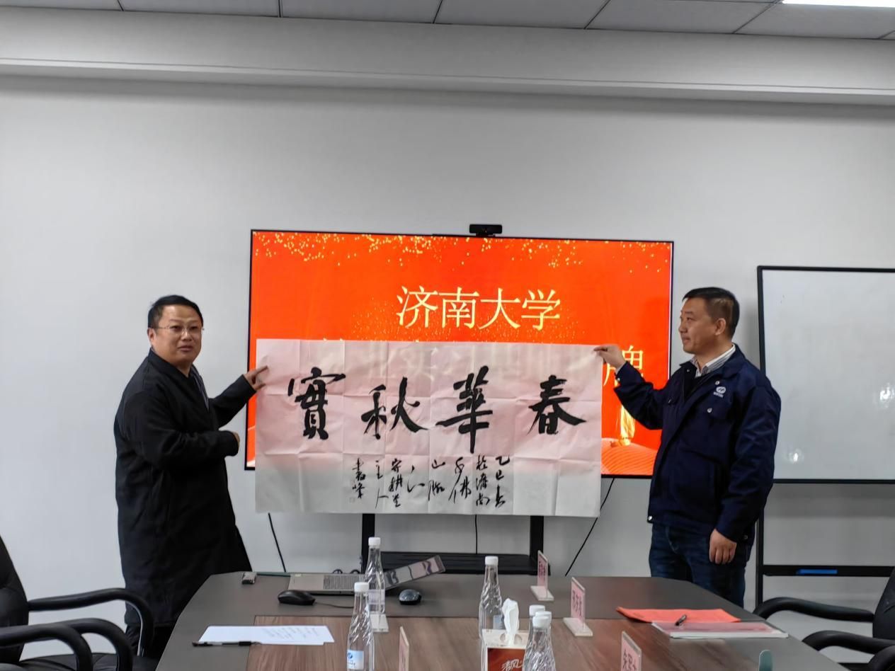 在潍坊,公司一行先后走访了潍坊市汇锋新材料科技公司、山东矿机集团股份有限公司、好太太食品有限公司以及稻田镇政府。寿光市政府张东光副市长、寿光市委组织部李效宪副部长、昌乐县科技副县长李倩、稻田镇镇长桑迎彬出席相关座谈活动。汇锋新材料科技公司专注新型材料研发生产,对产品包装、宣传展示设计要求颇高,双方探讨了在设计人才输送、产学研合作方面的可能,助力其包装设计与宣传展示的创新。山东矿机集团股份有限公司作为传统制造业企业,数字化转型中急需美术与设计专业人才助力产品智能化展示与企业形象升级,双方就专业人才支持开展路径探索,推动转型升级。好太太食品有限公司则在品牌推广、产品包装等方面表达了对专业设计人才的强烈需求,公司将强化就业实习工作,为企业注入设计活力。在与稻田镇政府交流时,双方探讨了在乡村文化建设、特色小镇规划设计等方面开展合作途径。王书峰教授充分发挥公司书法专业特长,结合企业特色精心创作书法作品,为本次访企拓岗增添了浓厚的文化氛围。